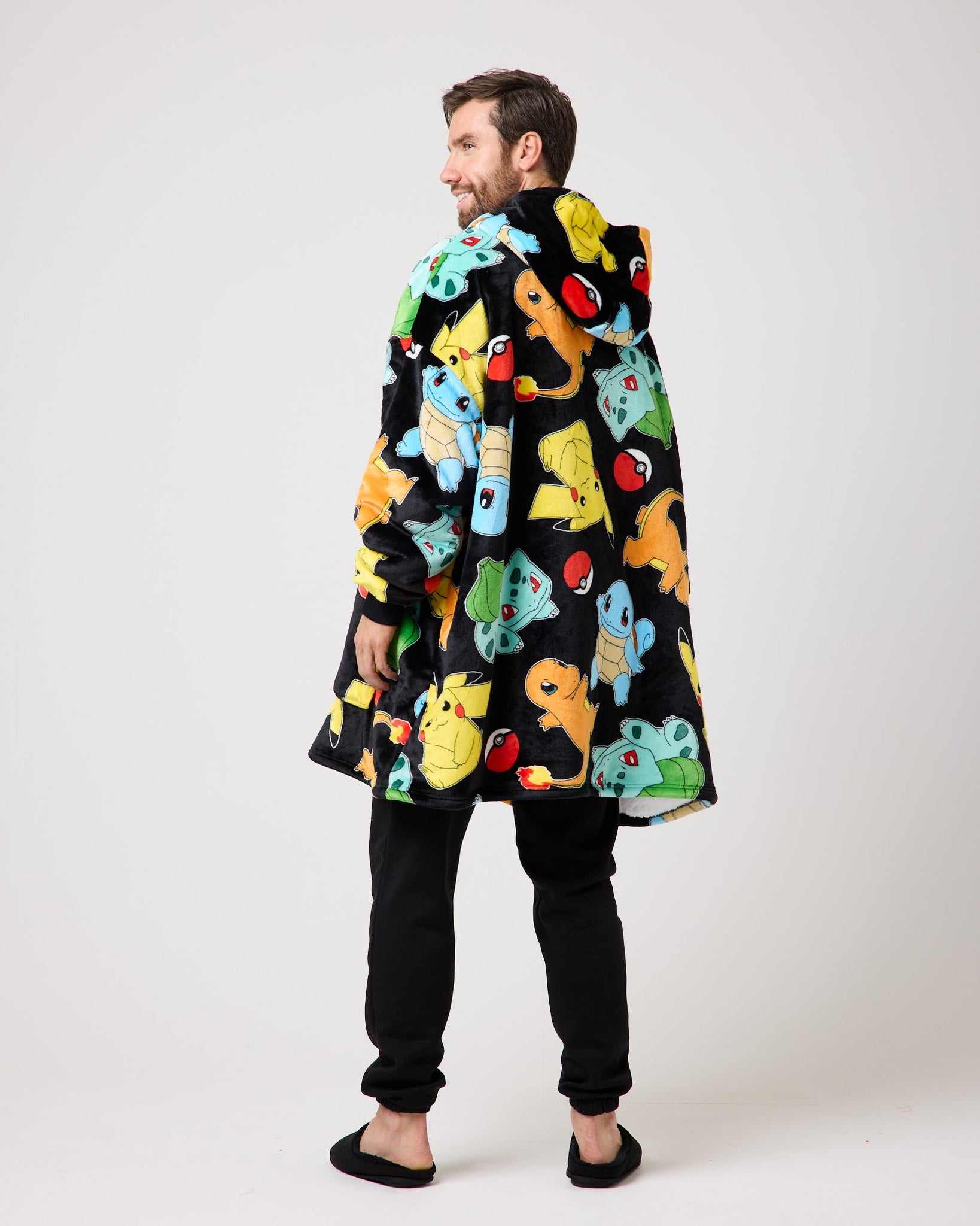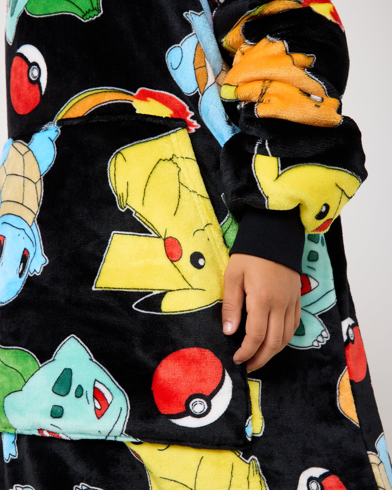 Catch 'em all with our Snuggz Original Pokémon Hooded Blanket, featuring all your favourite Pokémon characters, including Pikachu, Charmander, Squirtle and Bulbasaur - on a black hooded blanket!