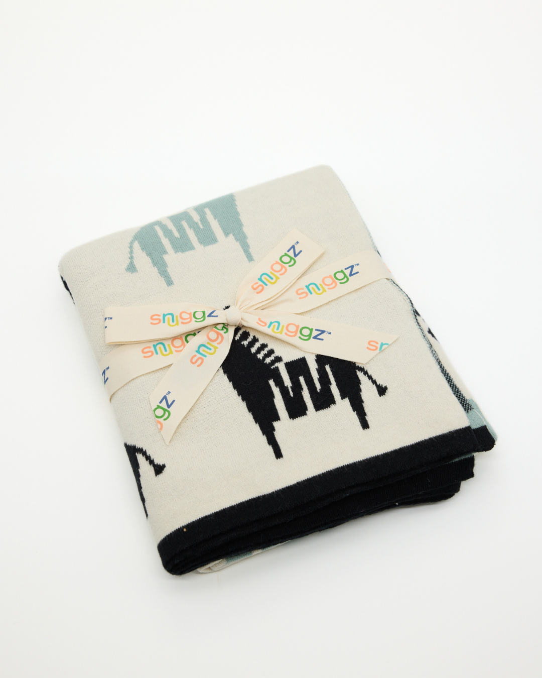Soft, calm and full of character, the Snuggz Knitted Zebra Baby Blanket is designed for everyday moments with your little one. Featuring a sweet zebra illustration on a warm neutral base with soft blue accents, it brings a gentle safari feel that works beautifully in modern nurseries without feeling too bold or busy.