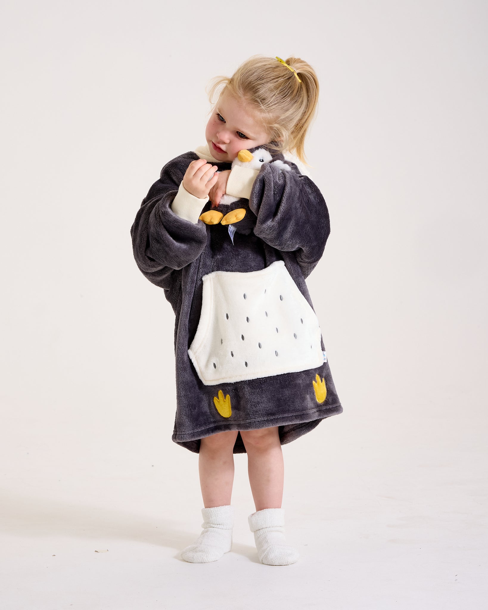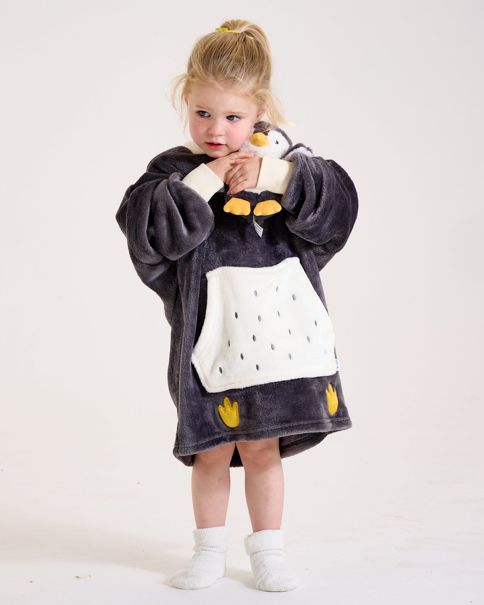 With a 3D beak, flipper details, and an embroidered face, this oversized hoodie is designed to delight every little penguin fan. Huggably soft and lightweight, it’s perfect for playtime, movie marathons, or cuddling up with their Pocket Pal. Ribbed cuffs add comfort, while the breathable fleece keeps things cosy all year round.