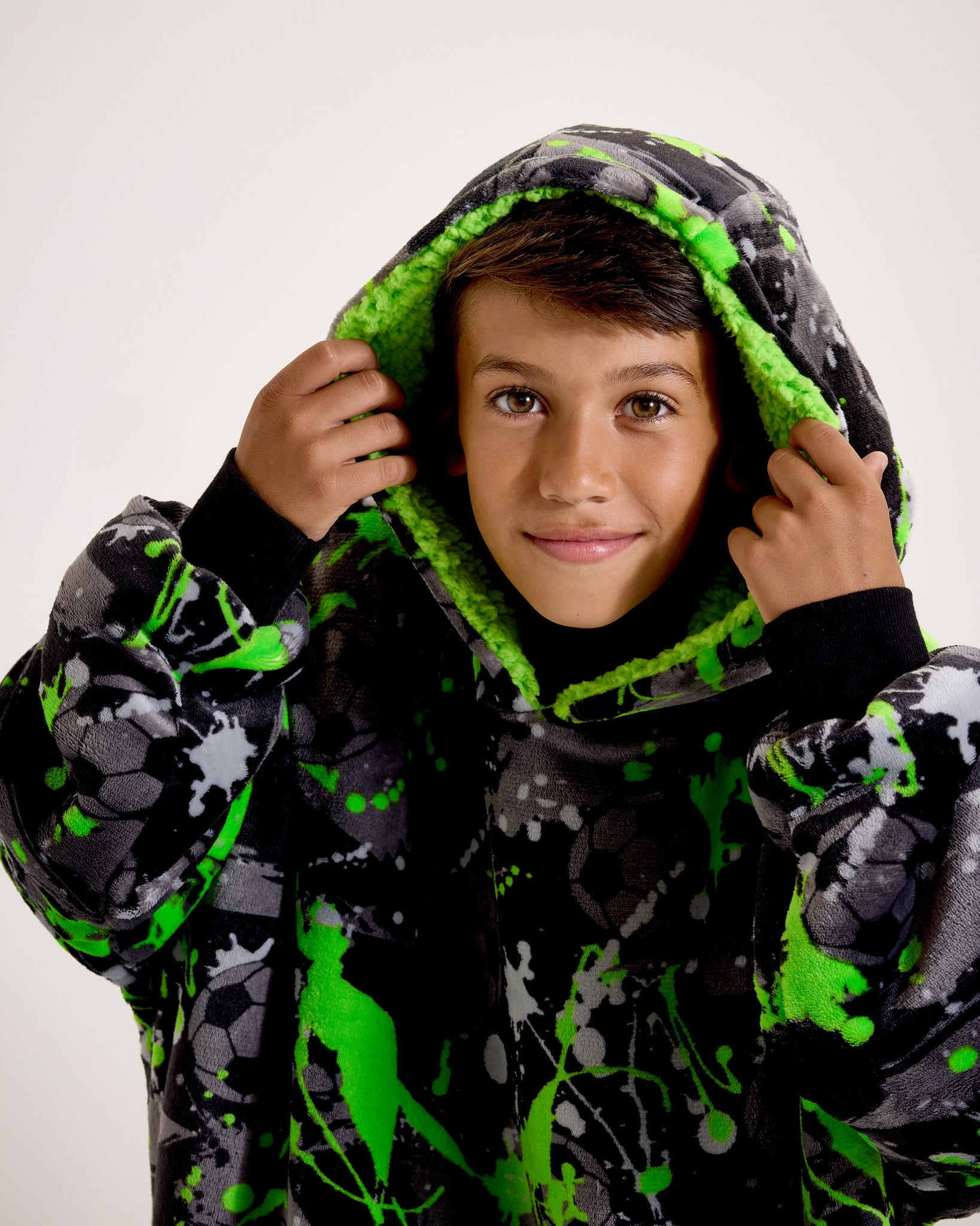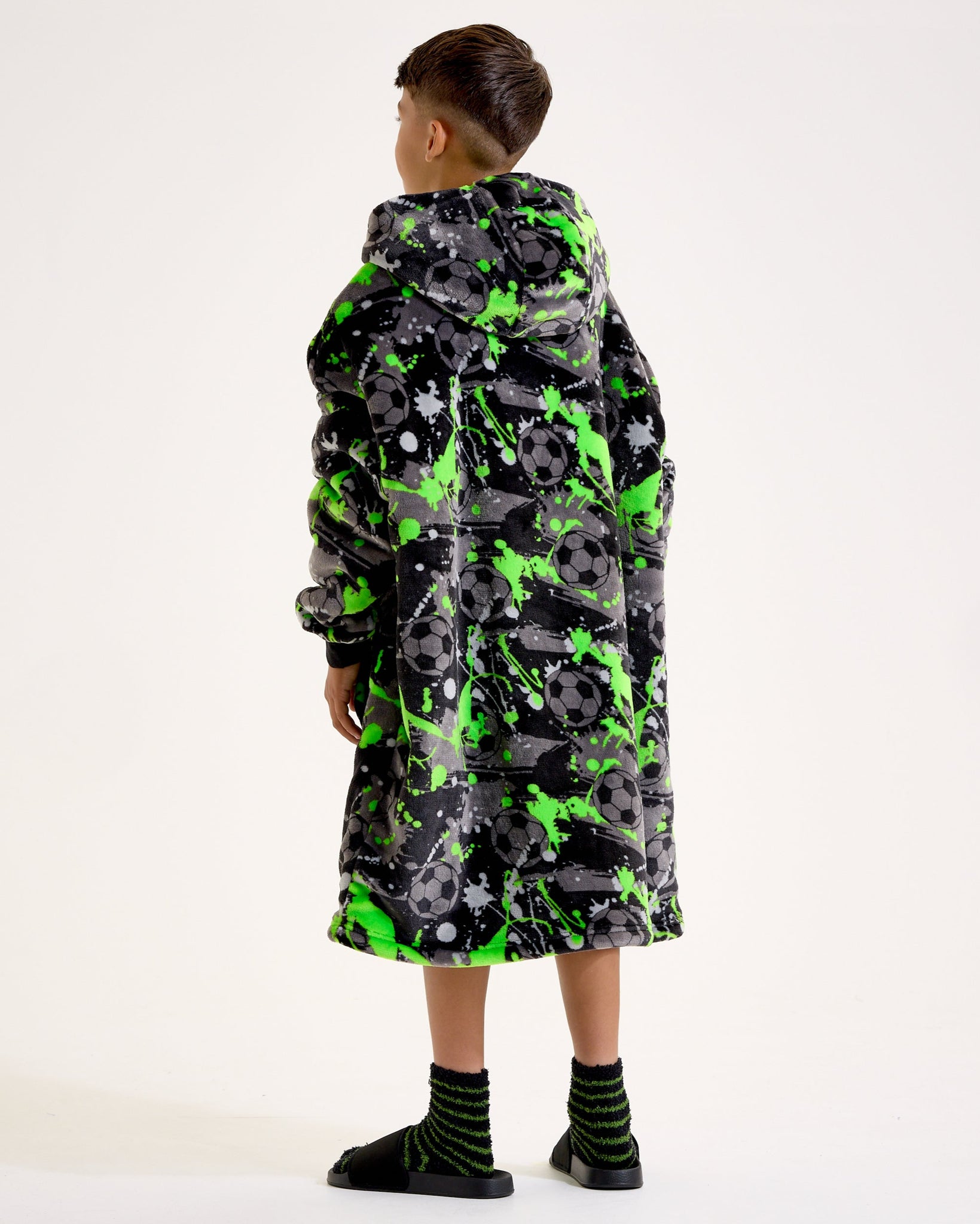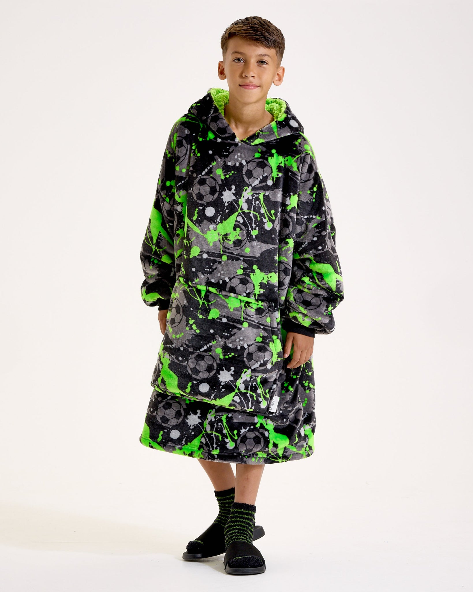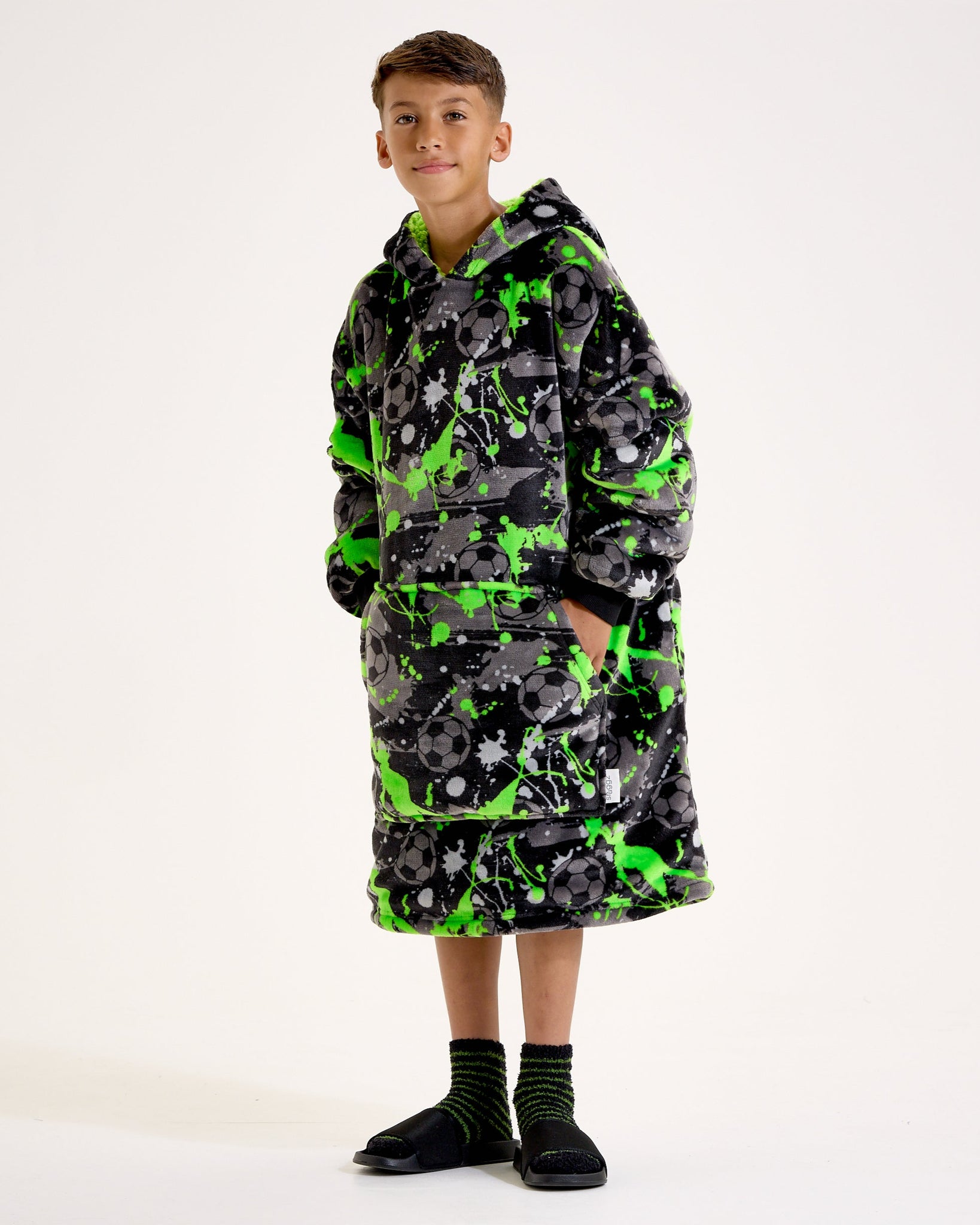 Make a bold statement while staying super snug with the Snuggz Kids Original Football Graffiti Hooded Blanket. Featuring a street-inspired graffiti print with neon splashes and football graphics, this oversized wearable blanket hoodie is perfect for kids and adults who love comfort with attitude. Whether it’s for gaming marathons, sofa lounging, or winter weekends, it keeps you cosy and stylish at the same time.
