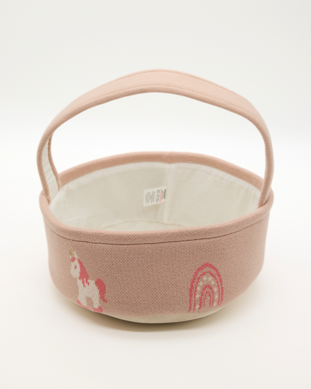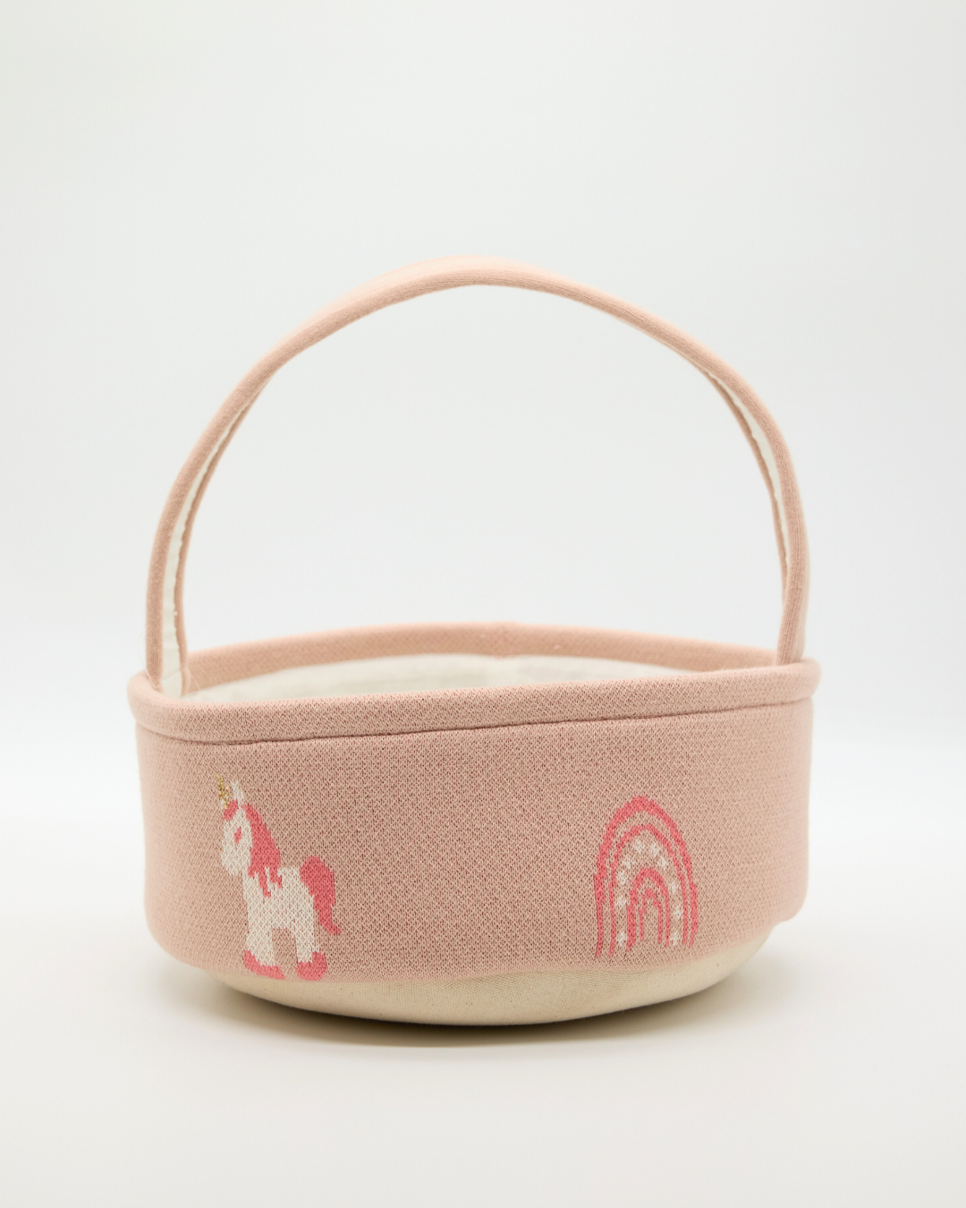 This Snuggz Knitted Pink Unicorn & Rainbow Small Storage Basket is made for the little everyday “tidy wins” that keep a nursery or kids’ room feeling calm. The soft blush pink knit is sweet without being shouty, and the tiny unicorn and rainbow details add that sprinkle of magic you’ll happily leave on a shelf or dresser.