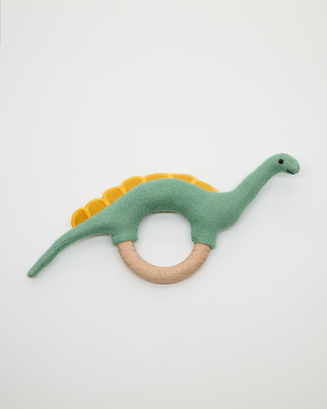 Crafted with a 100% cotton knitted outer and a smooth, natural wooden ring, this toy offers a variety of textures for sensory exploration. The soft cotton knit is gentle on sensitive gums, while the durable wooden ring provides the firm pressure needed during teething. Perfectly sized for small hands to grasp, it serves as both a soothing teether and a whimsical first toy.