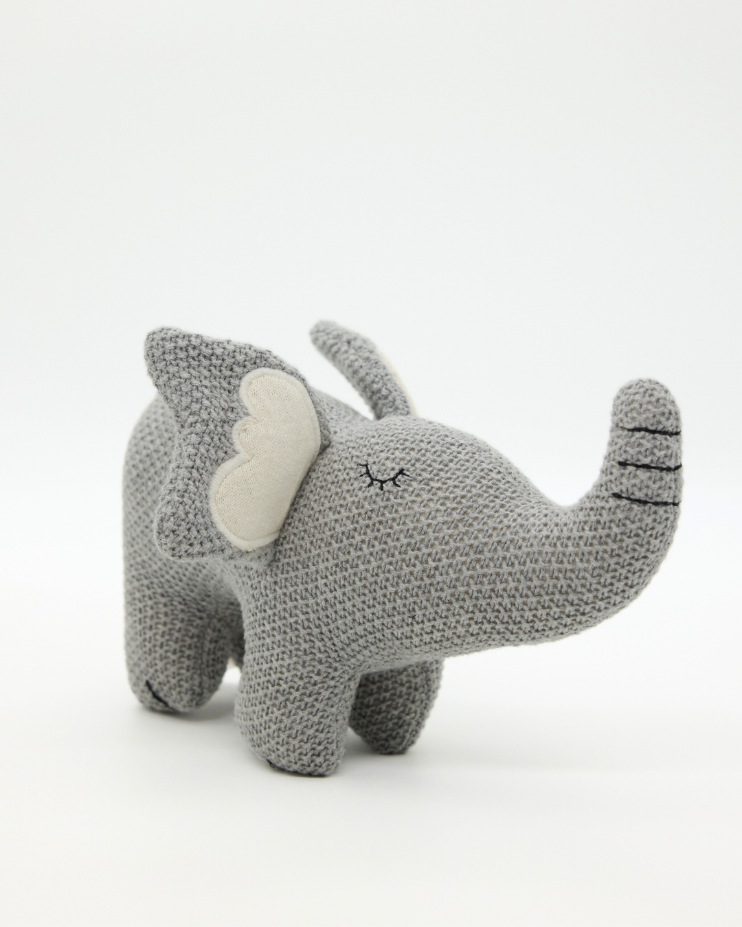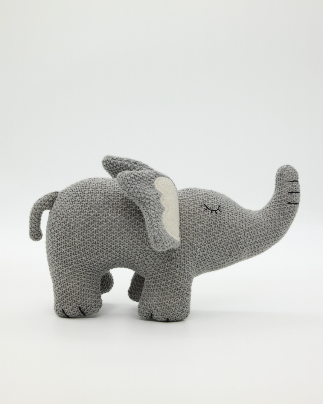 Designed to be soft without feeling heavy, this elephant is easy for little hands to hold and carry, whether it’s moving from cot to sofa or heading out in the pram. The breathable cotton knit gives it a natural, comforting texture, while the plush filling keeps it huggable and supportive. It is a beautiful choice for baby showers, birthdays, or simply adding something special to a child’s room.