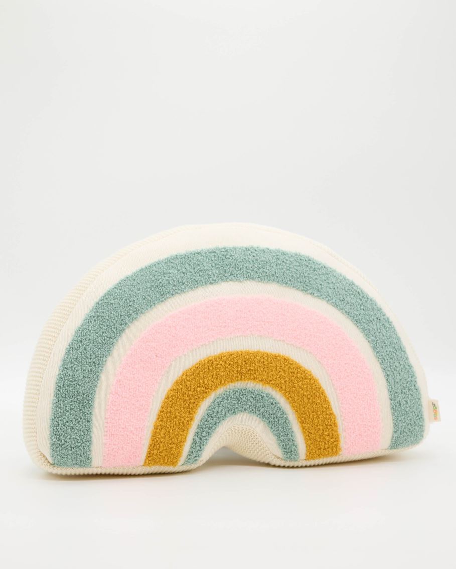 Add a little sunshine to their space with the Snuggz Knitted Pastel Rainbow Shaped Cushion with Filler. Designed in soft pastel tones of pink, green and mustard, this rainbow cushion is the perfect finishing touch for a nursery, kids bedroom or cosy reading corner. It’s just the right mix of playful and calming — ideal for styling on beds, chairs or playroom corners.