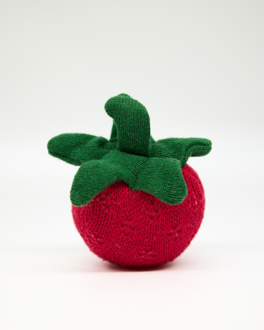 Our Snuggz Knitted Strawberry Toy is part of our Fruit Collection, made to bring a little colour, fun and “first learning” into everyday play. With its bright red hue, green leafy top, and delicate pointelle "seed" details, it’s the kind of toy babies reach for again and again . It's easy to hold, lovely to squish, full of gentle details and soft knit texture.