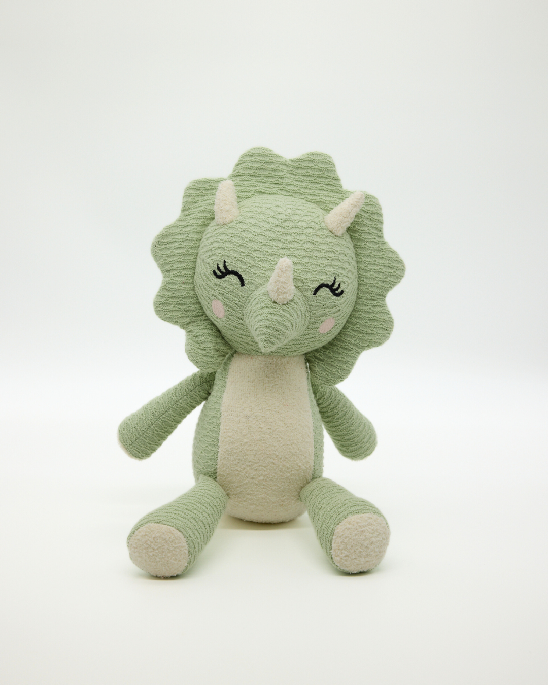 Our Snuggz Triceratops Dino Toy is made for little hands, big imaginations, and all the quiet moments in between. In a gentle sage green with creamy details, it has a sweetest face and little horns makes it the friendliest dinosaur. It brings a gentle artisan look to nurseries, playrooms and cosy corners.