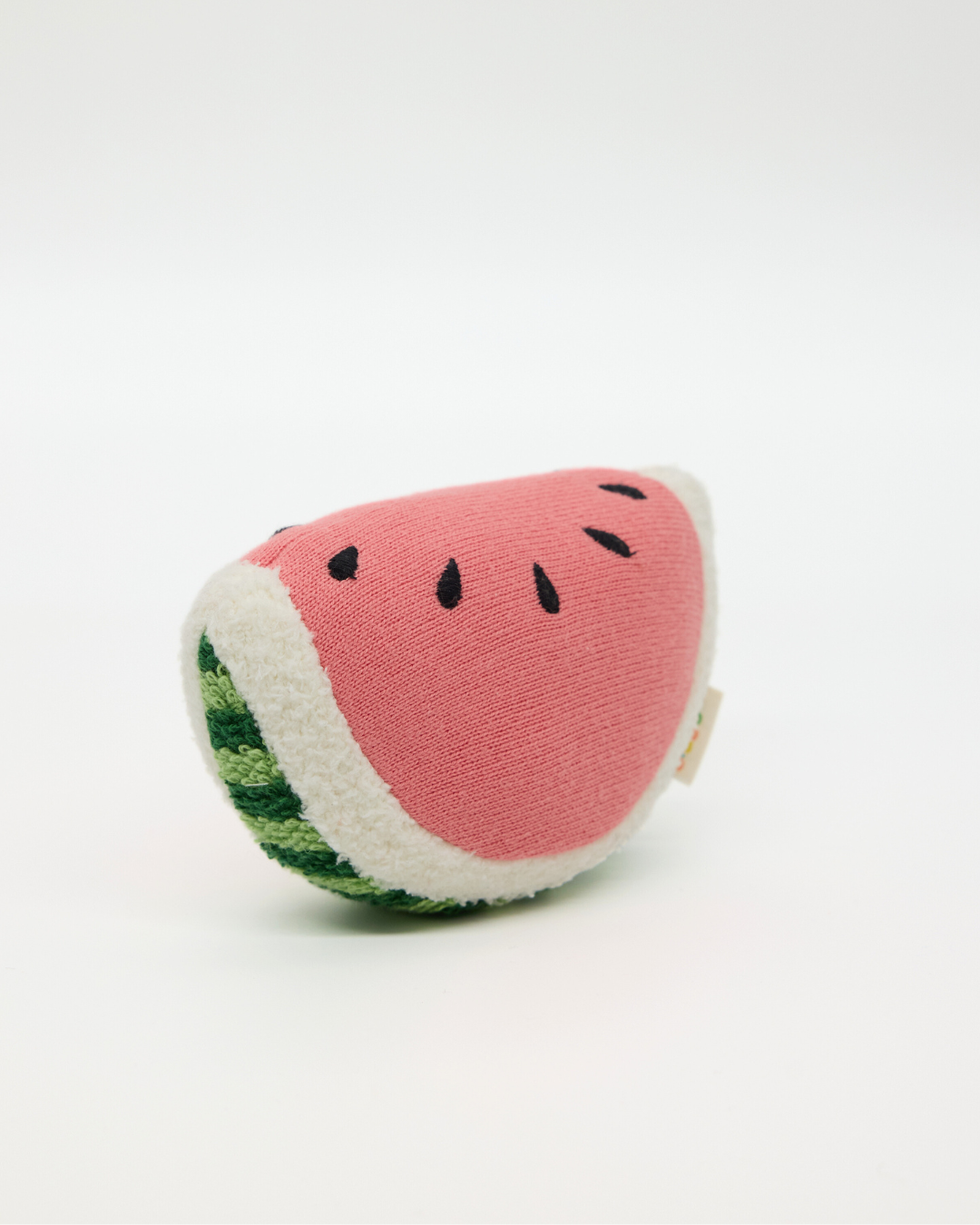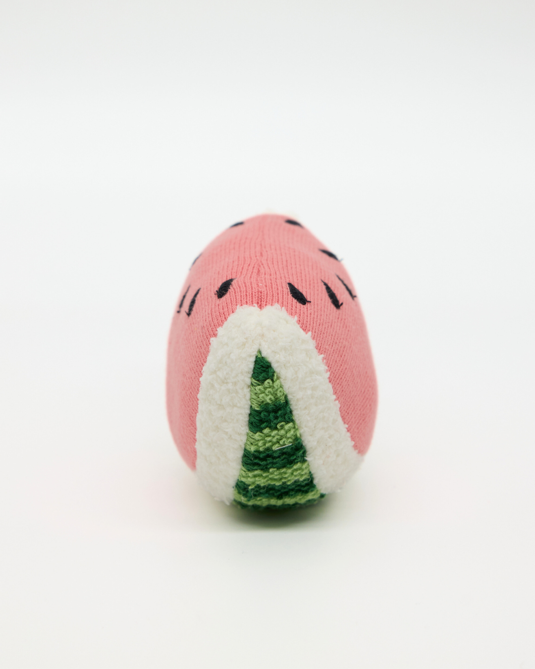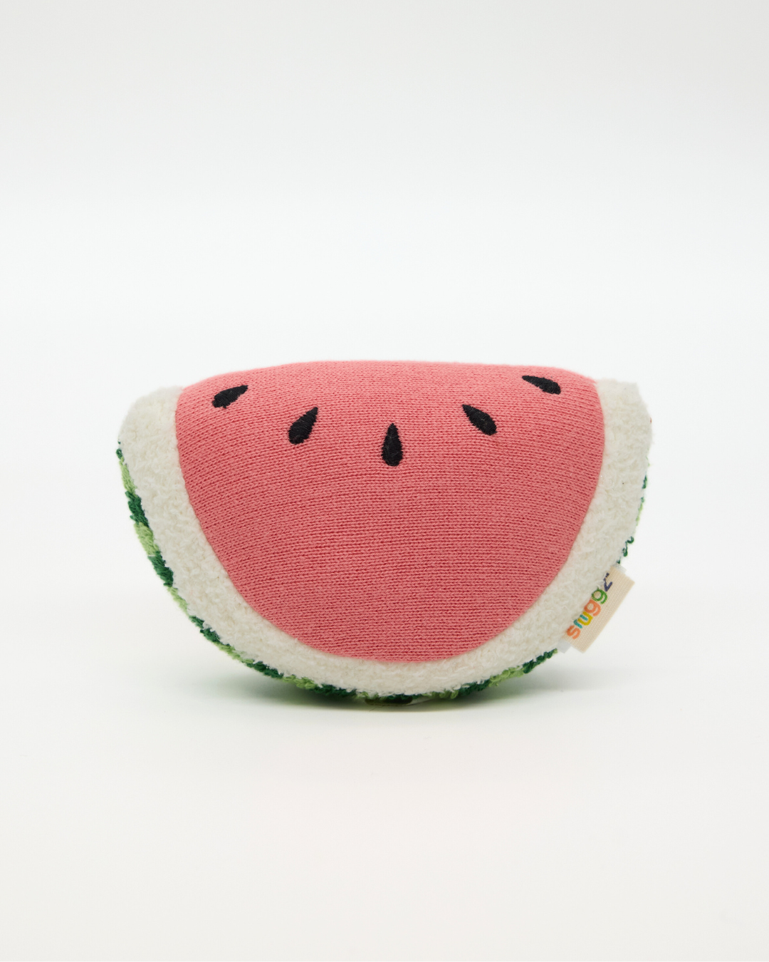 Our Snuggz Knitted Watermelon Toy is part of our Fruit Collection, made to bring a little colour, fun and “first learning” into everyday play. Shaped like a happy watermelon slice, it’s the kind of toy babies reach for again and again . It's easy to hold, lovely to squish, and full of gentle details like the stitched “seeds” and soft knit texture.