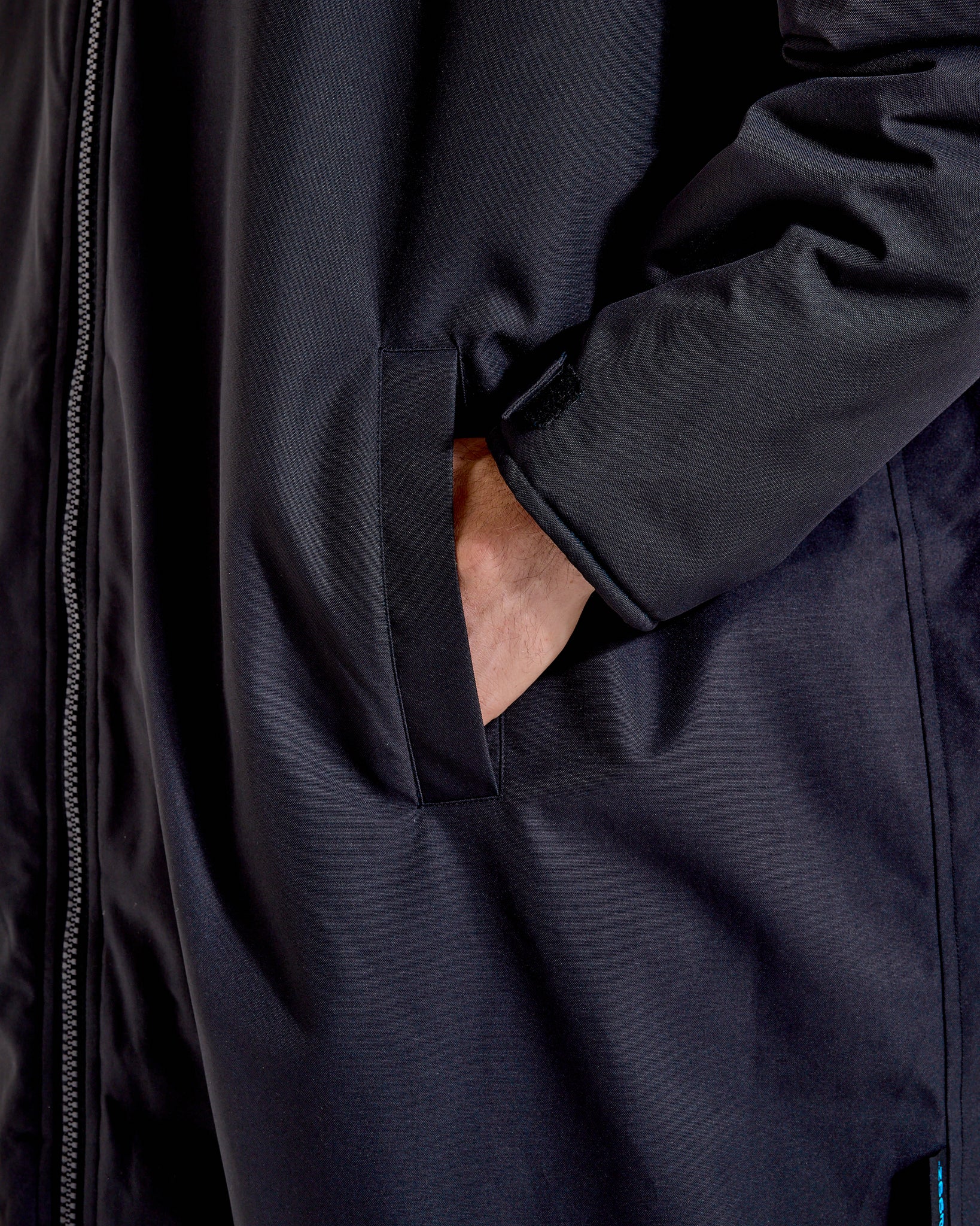 Featuring a classic black outer shell and a soft, fluffy Borg fleece lining through the interior and hood, this robe keeps you cosy whether you're changing out of wet gear, warming up after a swim, or simply wrapping up against the cold. Showerproof, wind-resistant, and welcomingly warm, it delivers comfort and practicality in one oversized design.