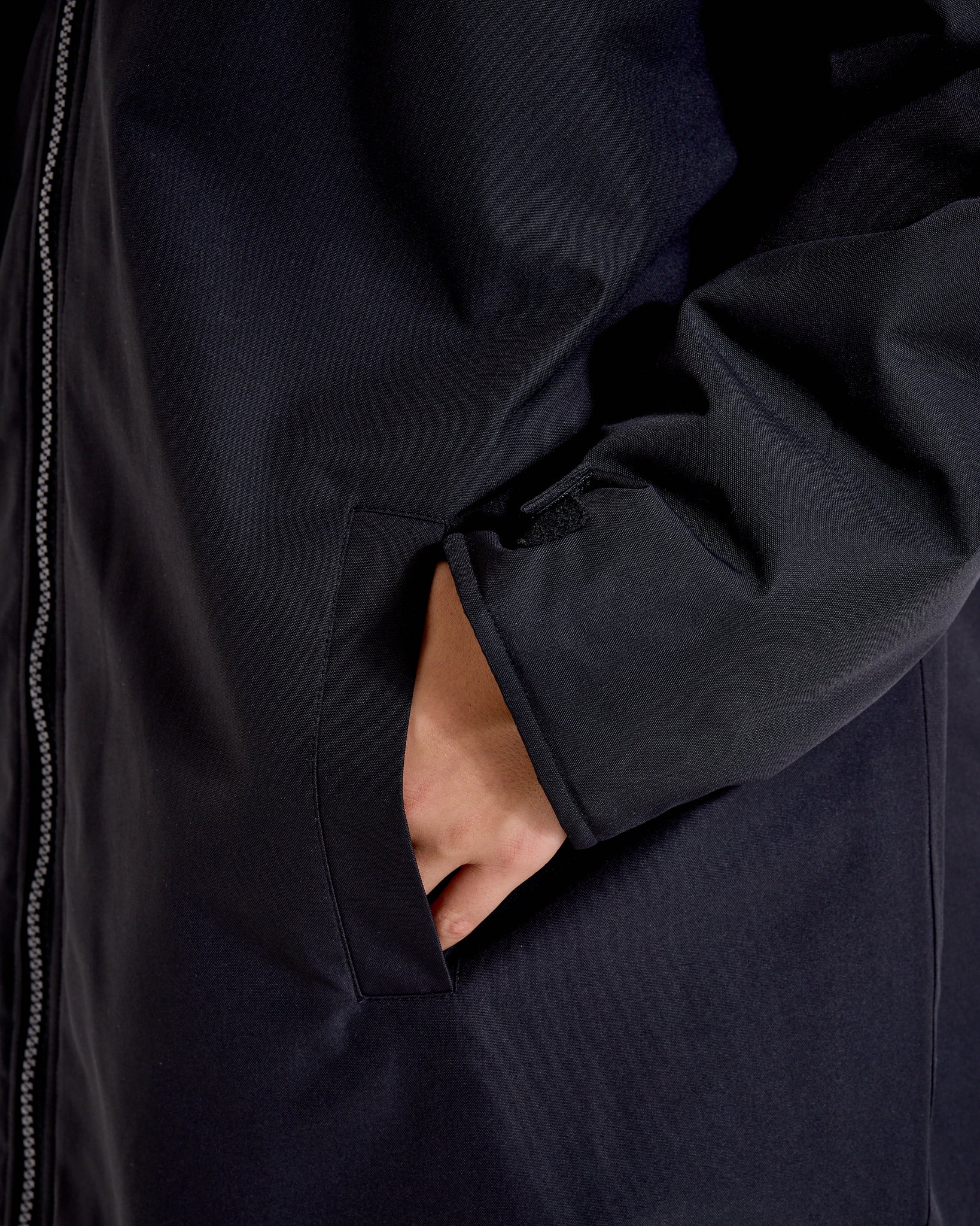 - Velcro sleeve cuffs — secure fit and added heat retention