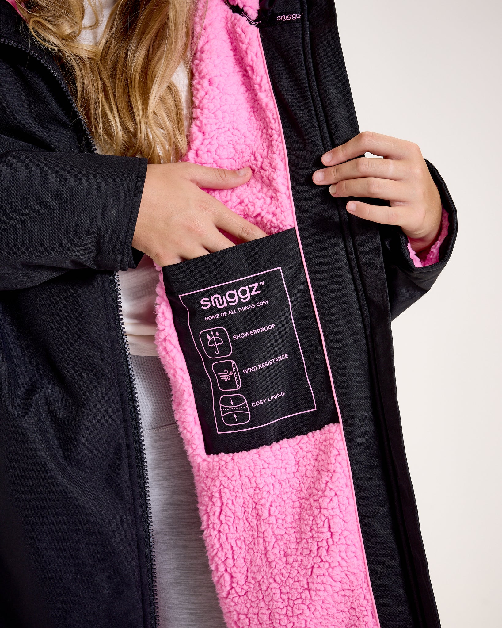 Stay sleek on the outside and snug on the inside with the Snuggz Lite Black Changing Robe - now available with your choice of a playful Pink Borg lining or a bold, cool Blue Borg. Designed in our lite, mid-weight build, it’s the perfect blend of style, warmth, and weather protection for every adventure.
