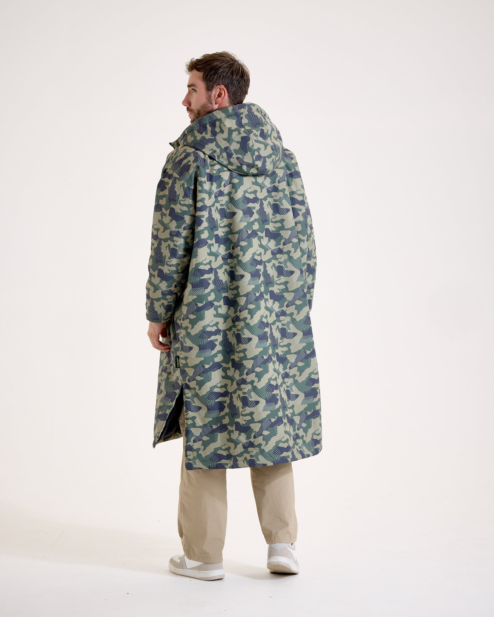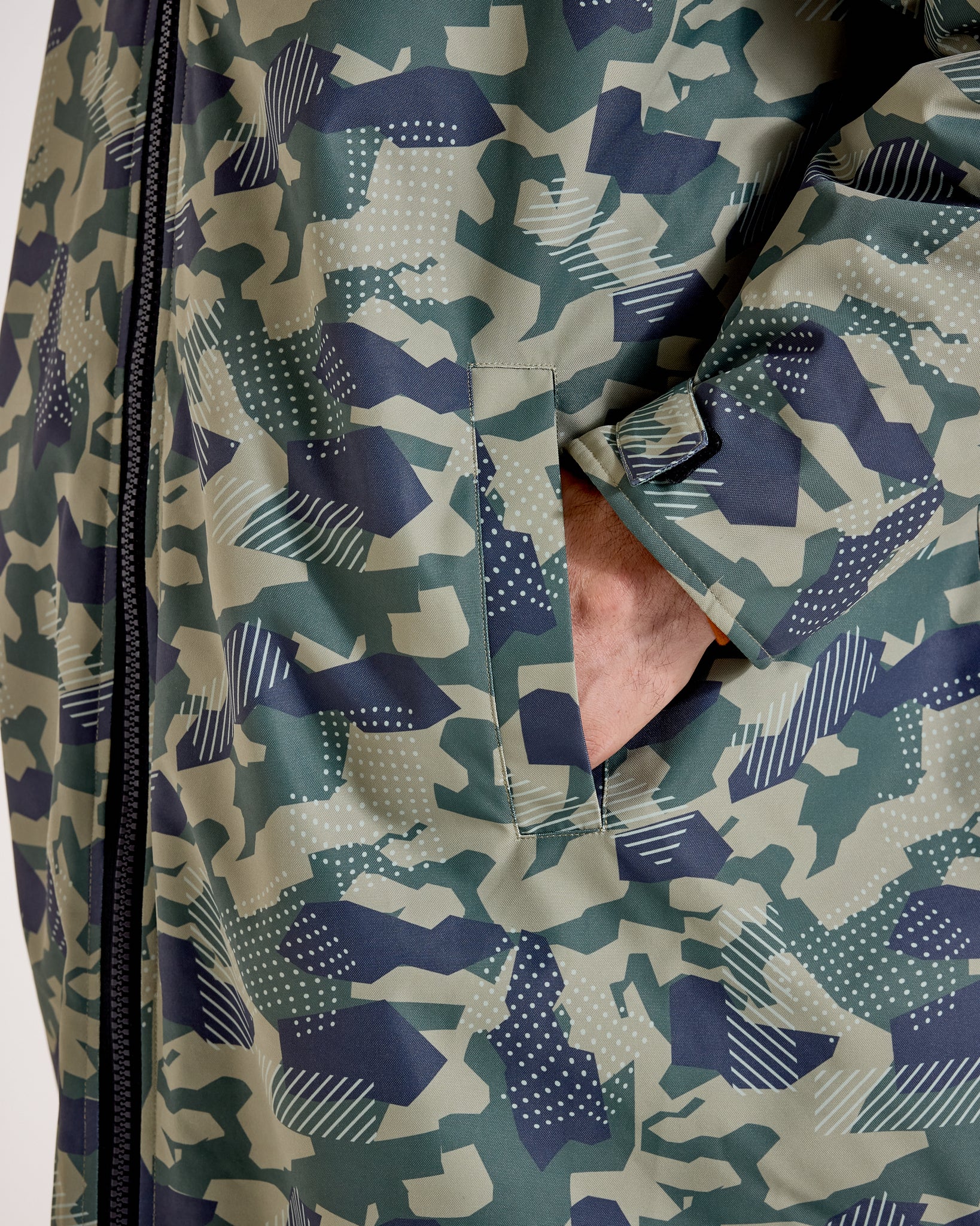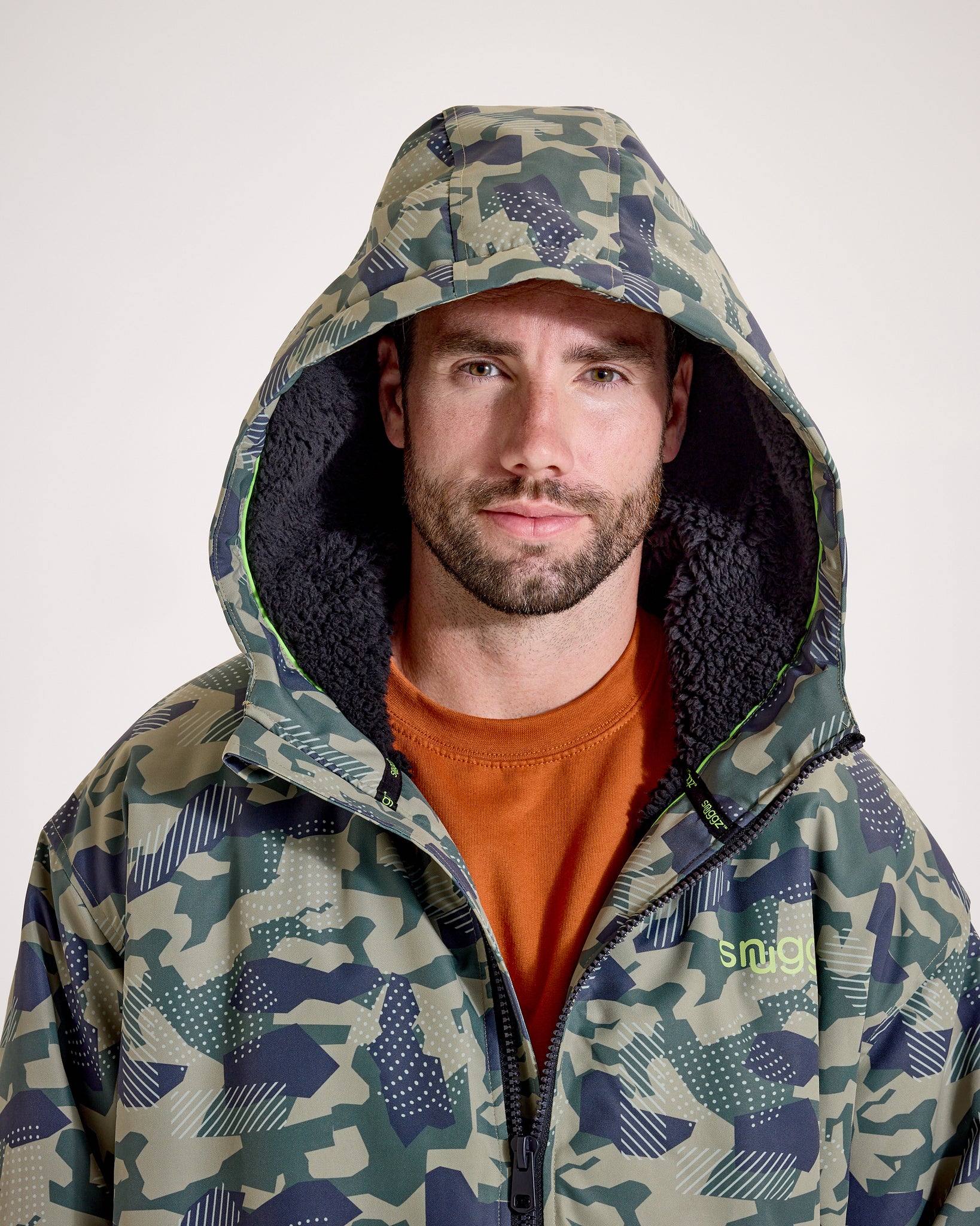 The roomy fit makes it easy to change underneath, while the full-length two-way zip and high-neck hood provides protection against wind, rain, and cold. Whether you’re post-swim, at a sports event, or braving chilly weather, this Snuggz green camo parka keeps you snug, dry, and ready for your next adventure.