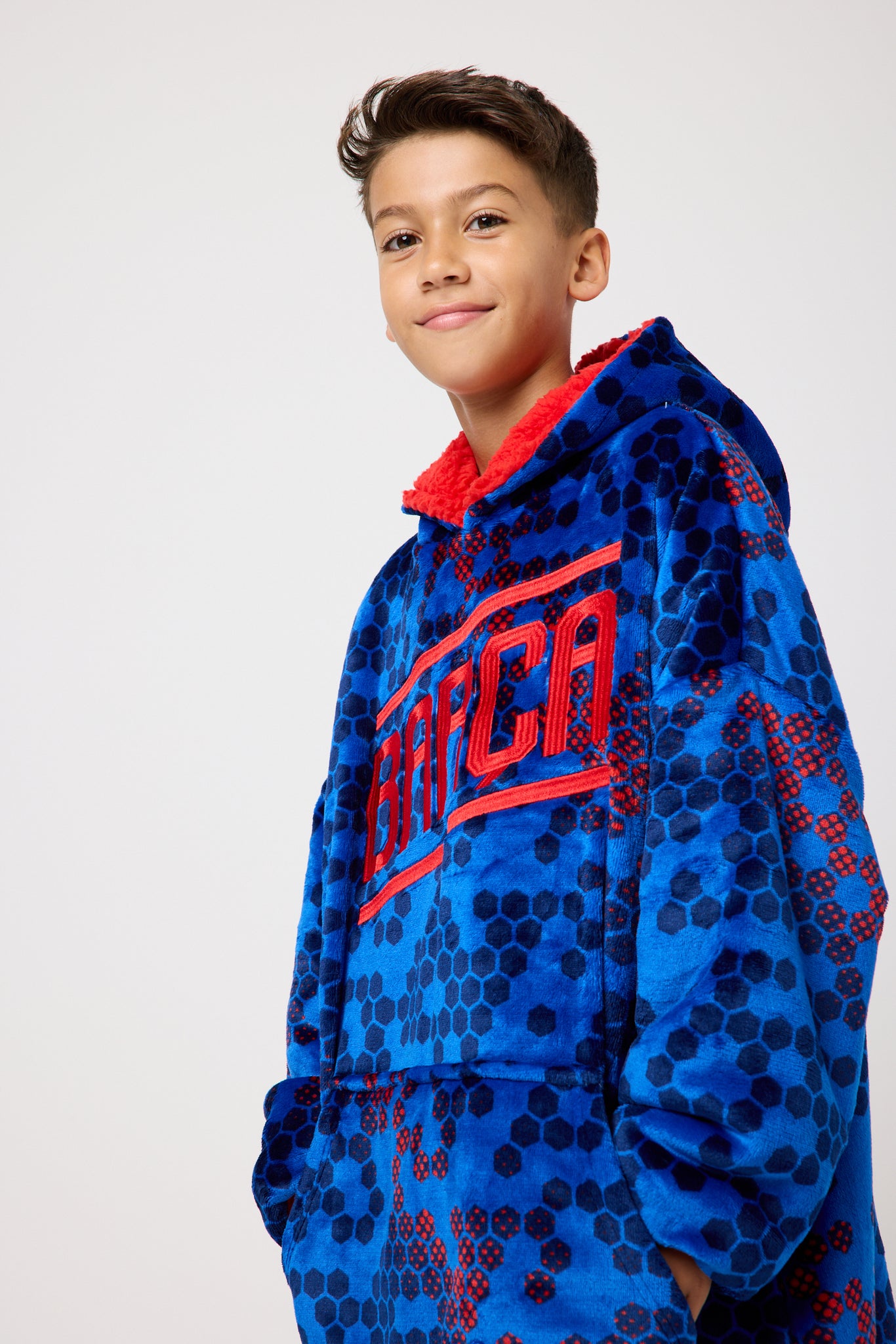 With its bold blaugrana colours, it brings that unmistakable club pride into every cosy moment. The super-soft borg lining feels like a warm hug after a chilly day, while the oversized fit gives them room to stretch, curl up and get comfy in true Snuggz style. It’s the kind of layer they’ll reach for all season long, especially on those big match nights at the Camp Nou.