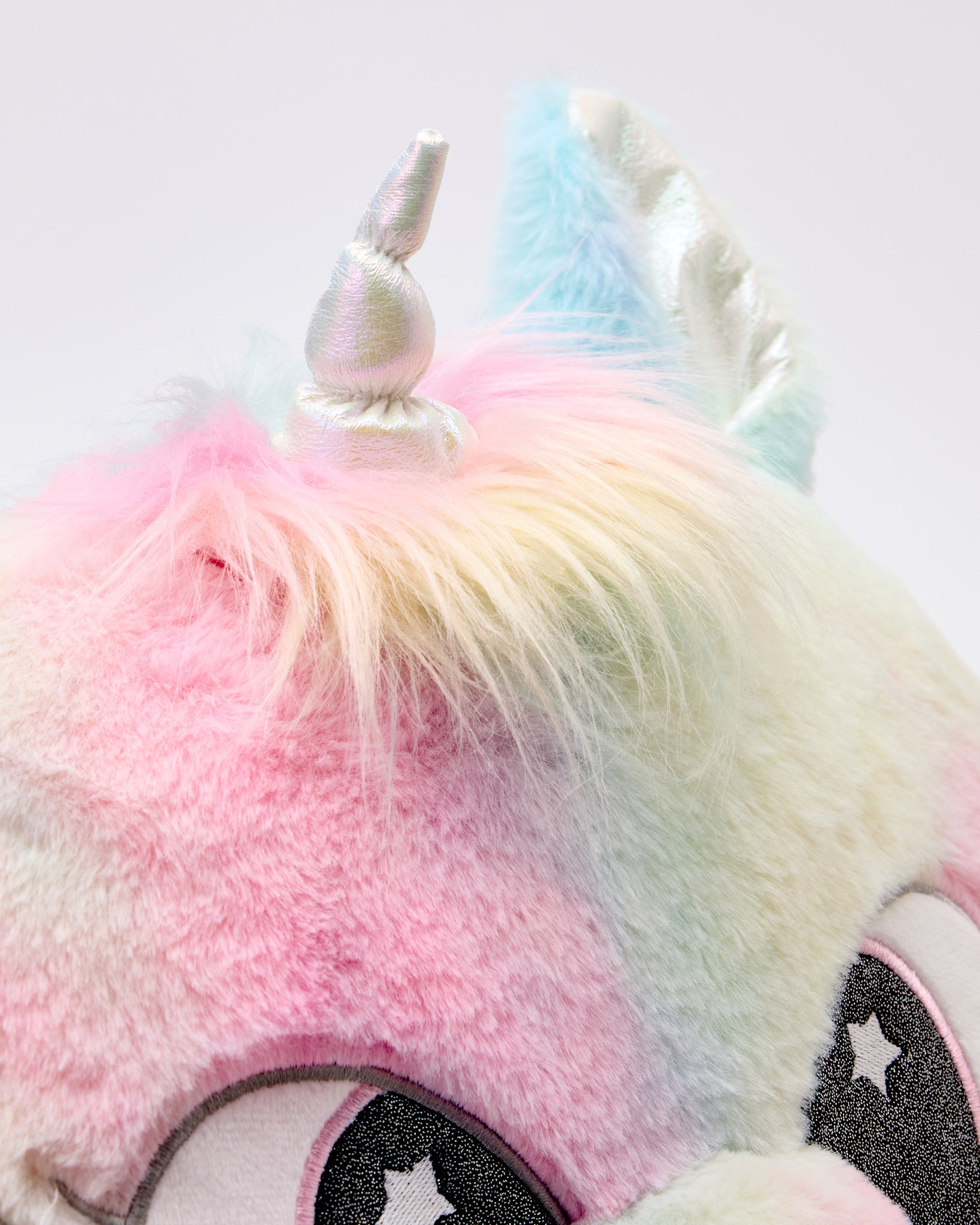 Get comfy with the Snuggz Uniron Cuddle Cushion - where magical comfort meets mythical charm. This adorable pastel plush unicorn features soft 3D ears and a shiny horn, with embroidered sparkly eyes and a friendly smile that bring this fantasy friend to life. Perfect for anyone looking for a unique unicorn plush, magical decor, or an ultra-comfortable cuddle cushion, it’s designed to make relaxing extra special.